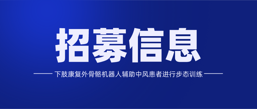南方醫科大學珠江醫院、廣東省工傷康復醫院、深圳市第二人民醫院、江蘇省人民醫院招募中風患者,符合條件者可享受免費的機器人訓練或者常規步行訓練;獲得免費及專業的隨訪檢查和評估以及交通補貼1000元。